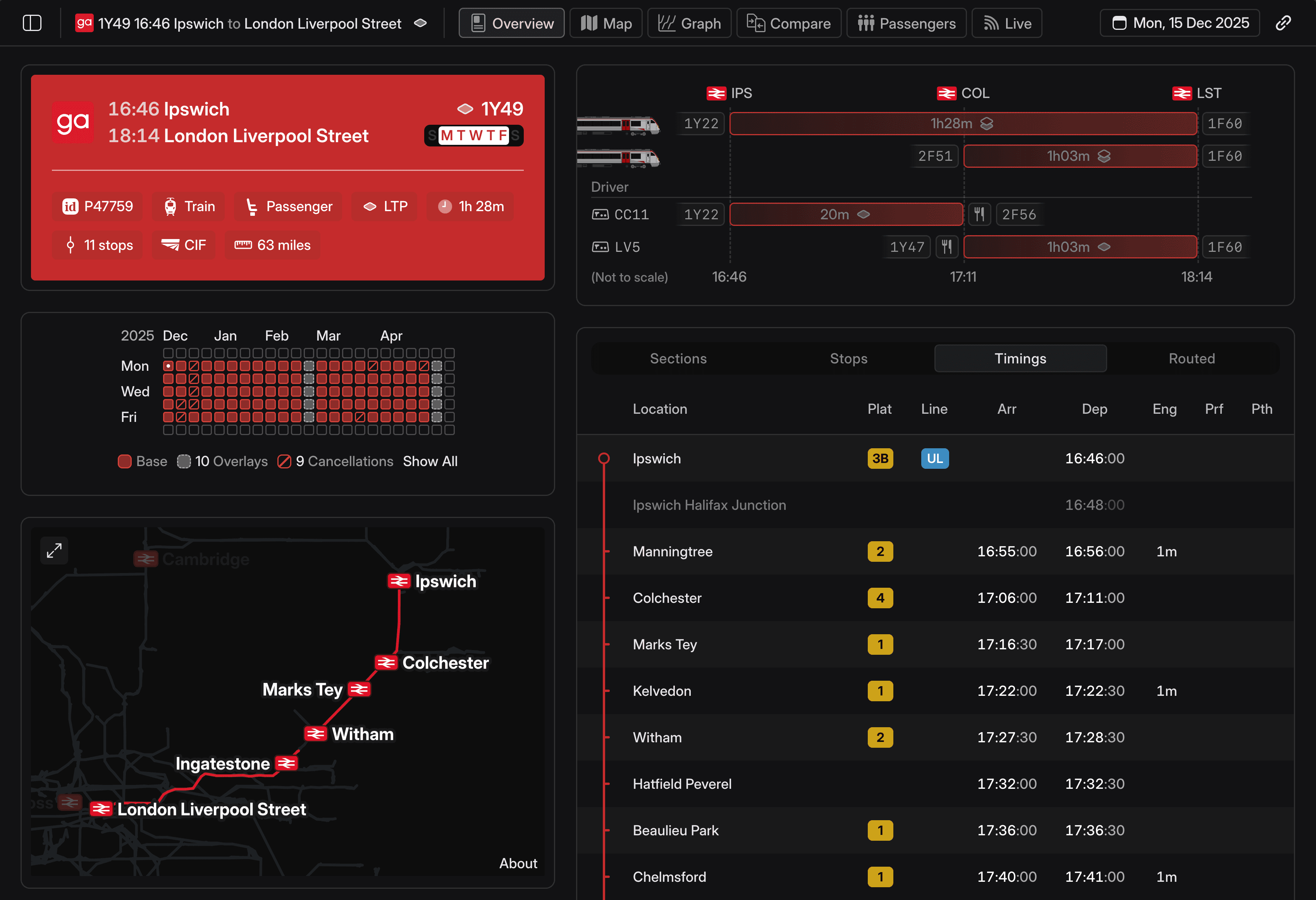 Access the data you need to understand how your timetable is working operationally and delivering for passengers. With insights ranging from train crew efficiency to passenger loadings, 1Timetable has access to the information it usually takes weeks to access. Plus, advanced features like our timetable change analysis allow you to self-serve information for any journey pair on the network, so when a timetable change is coming, you can see exactly what it means.